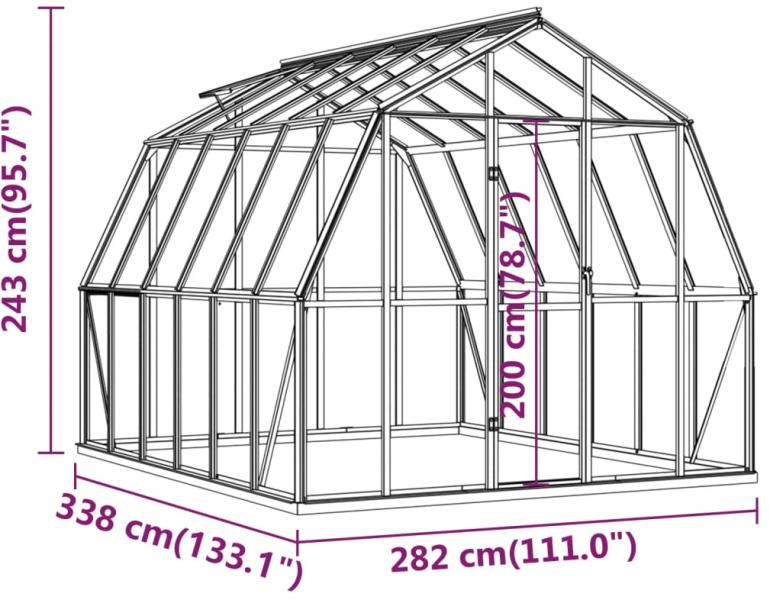 vidaXL antracitszürke alumínium melegház alapzattal 9,53 m2