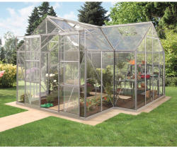 A SIRIUS üvegházak a PREMIUM kategóriába tartoznak - az üvegházat az Egyesült Királyság márkás gyártója gyártja. Az üvegház eloxált alumínium profilokból készül. Az üvegezés 6 mm vastag, hőszigetelő celluláris polikarbonát panelekből készül. Az üvegezés acél kapcsokkal van rögzítve a szerkezethez. Polikarbonát - kiváló minőségű kettős falú polikarbonát UV szűrővel (nem törékeny, nem sárgás). A maximális minőség biztosítása érdekében a legtöbb üvegházunkban üvegezésnél Marlon kamrás polikarbonátot (Brett Martin - Egyesült Királyság gyártja) vagy SUNLITE polikarbonátot (a Palram Europe - Németország gyártja) használunk. Mindkét polikarbonátot hivatalosan importálják a Cseh Köztársaságba és saját tesztjelentéseink vannak (a LANIT PLAST, s. r. o. kiadva). Ez a kevés üvegházak egyike a cseh és a szlovák piacon, amelyek kiváló minőségű polikarbonáttal vannak ellátva, cseh tanúsítvánnyal. A csomag tartalmaz kétszárnyú tolóajtókat (szélesség a lyukban = 122 x 191 cm), alapot, AL profilokat, üvegezést, 4 tetőszellőző ablakot manuális nyitással, 3 eresz, az összes összekötő anyagot. Az üvegház építhető akár tégla (beton, egyéb) alapra, vagy horganyzott lemezből készült alapra (a szállítás része). Az üvegházhoz számos kiegészítő megvásárolható - polcok, állványok, egyéb szellőztető tető- és oldalablakok, automatikus nyílások ezekhez az ablakokhoz, ereszcsatorna-készletek, hőmérők, higrométerek, öntözőberendezések, elektromos ellenállású fűtőtalaj. Figyelem:1) Az esetben, ha szándékába ál a beton esetleg a tégla alapfal építése, ezt csak az üvegház megvásárlása és az acél alap szerelése (üvegház szerkezet összeszerelése) után tegye. Az itt szereplő méretek a maximális külső méreteket jelentik, és ezek nem felhasználhatók az alapfal kiméréséhez és az építéséhez. 2) A természetes trágya (ló, / tehén trágya, csirketrágya stb. ) ugyanakkor a műtrágya, növény védő szerek, gyomirtók és egyéb vegyi anyagok használása esetén, hosszabb vagy rövidebb idő alatt, a korrózió megjelenését okozhatja az üvegház acél alkatrészein (alap, csavarok, stb. ). A szállítási időtartam eltérhet a feltüntetett szállítási időtől. A szállítási időről pontosabb tájékoztatást az ügyfélszoglálatunkon tájékozódhat. A házhozszállítás minden esetben kaputól kapuig történik. A szállításért felelős munkatárs anyagmozgatásra nem kötelezhető. Fontos: A termék várható érkezése a gyártótól 2020. április vége.